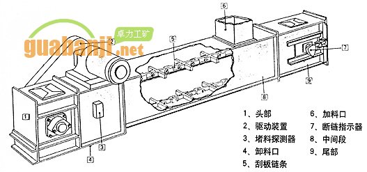 埋刮板輸送機在封閉的矩形斷面的殼體內(nèi),借助于運動著的刮板鏈條連續(xù)輸送散狀物科的運輸設備。